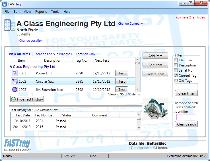 settings for Location Types, Test Intervals and Test Results. FASTtag