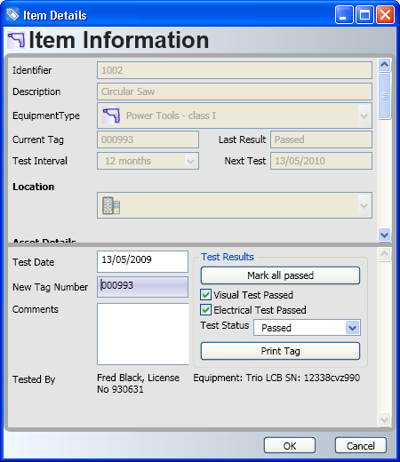 Tag Printer OptionAutomatically print tags as you testFASTtag includes an optional feature to connect to any ZPL or EPL compatible printer. This includes the popular and industry standard range of Zebra printers, such as the TLP 2824plus and TLP 2844Z printers. To print a tag, once the appliance has been tested and passed, just click the Print Tag button. You can also configure FASTtag to print the tag automatically when each new test is saved. The default tag includes all the required information
