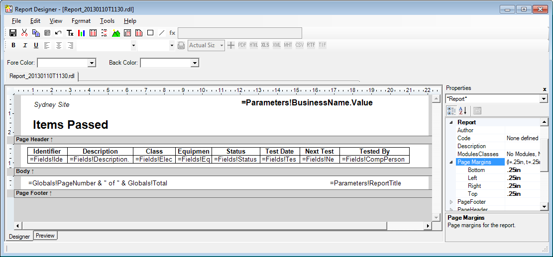 Report DesignerAdvanced tool to quickly build powerful Report templatesFASTtag Report Designer is an integrated tool to allow creation and design of reports in an easy to use, what-you-see-is-what-you-get editing environment. FASTtag Report Designer features a point and click interface to add fields and columns to the report. Setting a font is simply a matter of selecting the object (for example, a text field) then applying the required font. Other common formatting like alignment, borders and colours are managed just as easily. The properties dialog also allows simple editing of the RDL code used to extract report items from the data file.